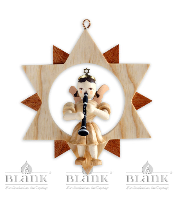 Blank Engel mit Klarinette im Stern, natur 123-Erzgebirge
