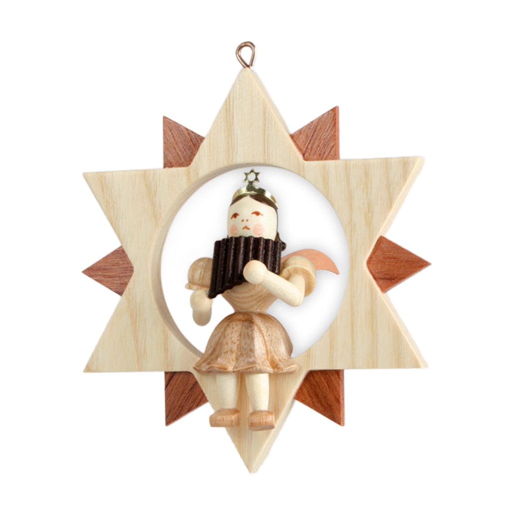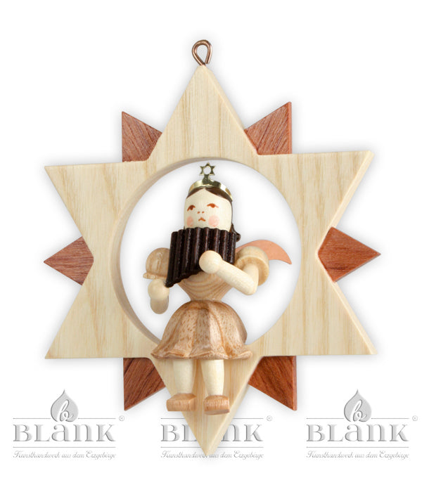 Blank Engel mit Panflöte im Stern, natur 123-Erzgebirge